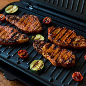 You can always depend on George Foreman to deliver top-notch grilling results. You can cook your favourite recipes faster than ever before because to the short heat-up time. With a 160% faster heat up time, you may enjoy freshly prepared food with guests in under 6 minutes plus from switch on to dish. 230°F electric oven grill vs. normal electric oven grill