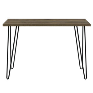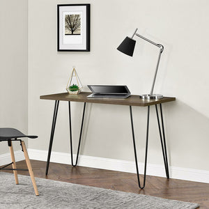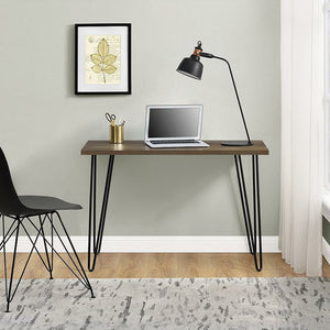 Create work from home space in small and medium-sized rooms with the Ameriwood Home Owen Retro Computer Desk. Make the most of this piece’s versatility by using it as a desk, vanity or console table in the office, den, or living room. Able to support up to 100 lbs., it’s great for holding your laptop, important paperwork, desk lamp and family photos. The brown walnut finish coupled with the black metal hairpin-style legs adds an updated, modern look. The Desk ships flat to your door and minimal assembly is required. Simply attach the 4 legs to start using your Desk.