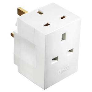 Using this Masterplug adaptor takes the struggle out of trying to use more than one electrical appliance with limited numbers of sockets With three sockets, you can conveniently use more than one electrical appliance without worrying about any crowded or clashing plugs. The small and compact white fused adaptor has three sleeved pins that are extruded from solid brass. Manufactured to BS1363 and can reach a maximum wattage of 13 amps, 3120 Watts, 240 Volts.