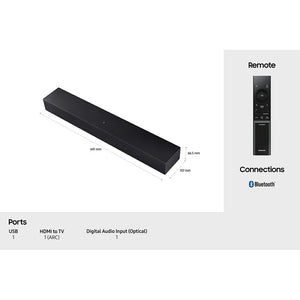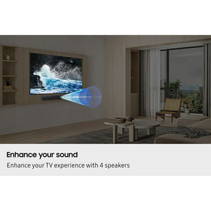 The B400F is perfect for those not satisfied by their TV sound alone. Hear more of the detail from dedicated front firing speakers. This soundbar includes 4 built-in speakers tuned by the award-winning Samsung Audio Lab.