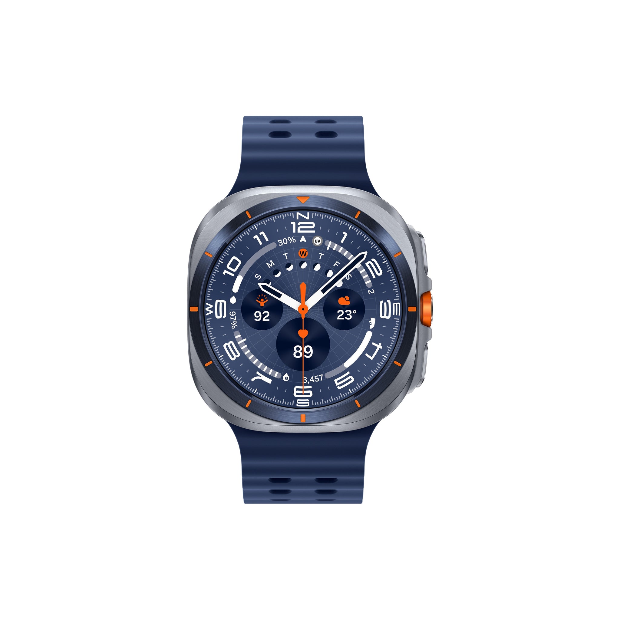 Galaxy Watch Ultra is crafted with precision and built for adventure. The 1.5-inch Super AMOLED display is surrounded by a durable titanium casing - equal parts rugged and refined. The new blue colourway ensures there’s a look to suit every taste. Favourite workouts can be launched in a single press with the Quick Button, while upgraded 64GB storage (double the previous model) gives you even more space for music, apps, and workouts on your wrist. The huge 590mAh (typical) battery will comfortably see you through an ultra-marathon or weekend mountain trek, and when it’s time to power up, wireless fast charging won’t have you waiting around for long