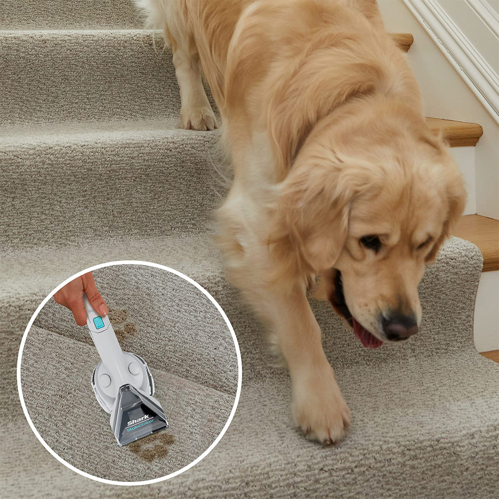 Introducing the Shark CarpetXpert Deep Carpet Cleaner with StainStriker, combining a powerful deep carpet cleaner with a built-in stain and spot cleaner for supercharged stain elimination.