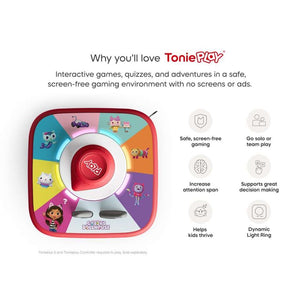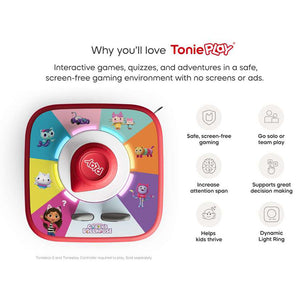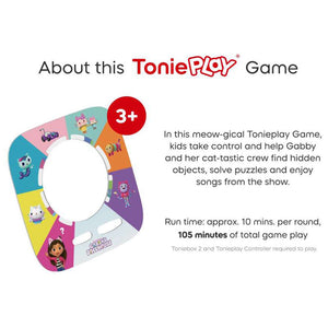 • Join Gabby and her purr-fect pals in a game full of magic, music and make-believe. Based on the hit series Gabby’s Dollhouse, this Tonieplay Game lets kids search for objects, solve puzzles, and sing along to songs. With 6 interactive stories and a dollhouse Puzzle Board, little adventurers can turn, press and play their way through 105 minutes of fun. Tonieplay unlocks new ways to play, only on Toniebox 2. Just place the Tonieplay Disc and Controller on Toniebox 2 and begin the cat-tastic quest!